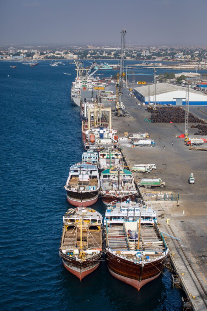 The network of Emirati state-owned enterprises plays a central role in this. DP World, one of the world’s largest port operators, manages 87 ports in forty countries. The Dubai-based port giant has invested approximately half a billion dollars since 2016 in the construction and operation of the port in Berbera. DP World now manages ports along the Indian Ocean, the Mediterranean Sea, and the Atlantic coast. Together, they form a network that virtually completely encircles the African continent. In addition, the Abu Dhabi Ports Group is also rapidly expanding its presence on the continent, with projects in East Africa, Rwanda, Congo, Angola, Senegal, Guinea, South Africa, Algeria, and Egypt, among others.